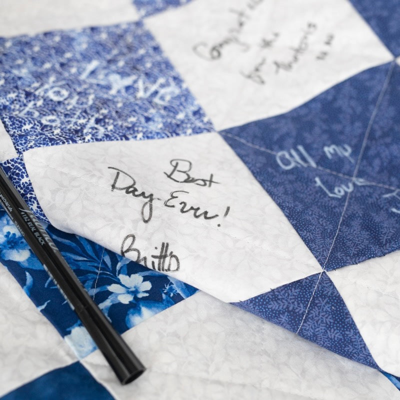 Struggling to find the perfect wedding gift for your daughter? Especially, since the bridal shower is only a few weeks away? No problem! I make amazing wedding guest book quilts that your daughter will cherish! These unique wedding quilts are often used as a guestbook alternative. Brides love custom quilts and you are going to love how simple I make it!